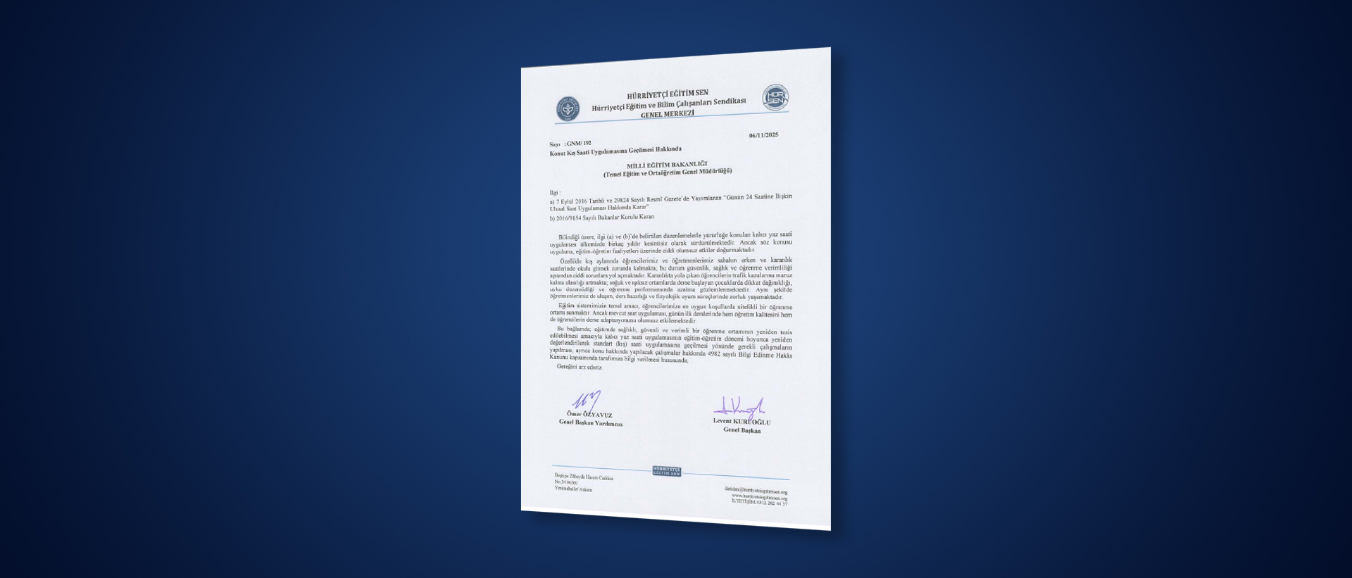Kış Saati Uygulamasına Geçilmesini Bakanlıktan Talep Ettik