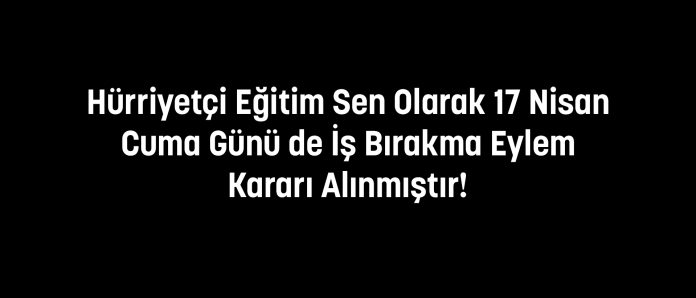Ülke genelinde okullarımızda artan şiddet olaylarına karşı, 17 Nisan Cuma günü iş bırakma eylem kararı alınmıştır.